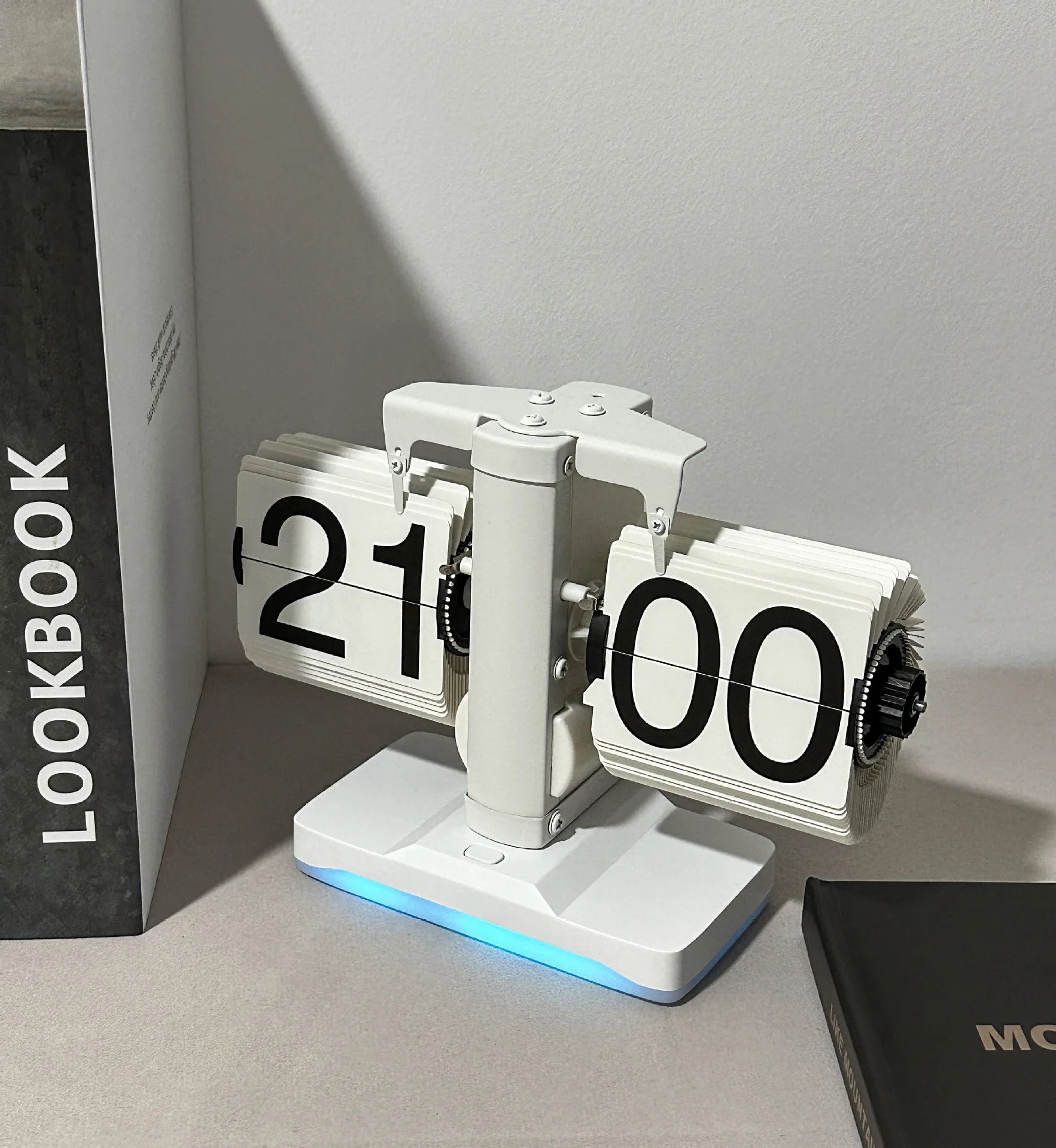 Relógio de Mesa Auto-flip Branco Europeu Base Com Led