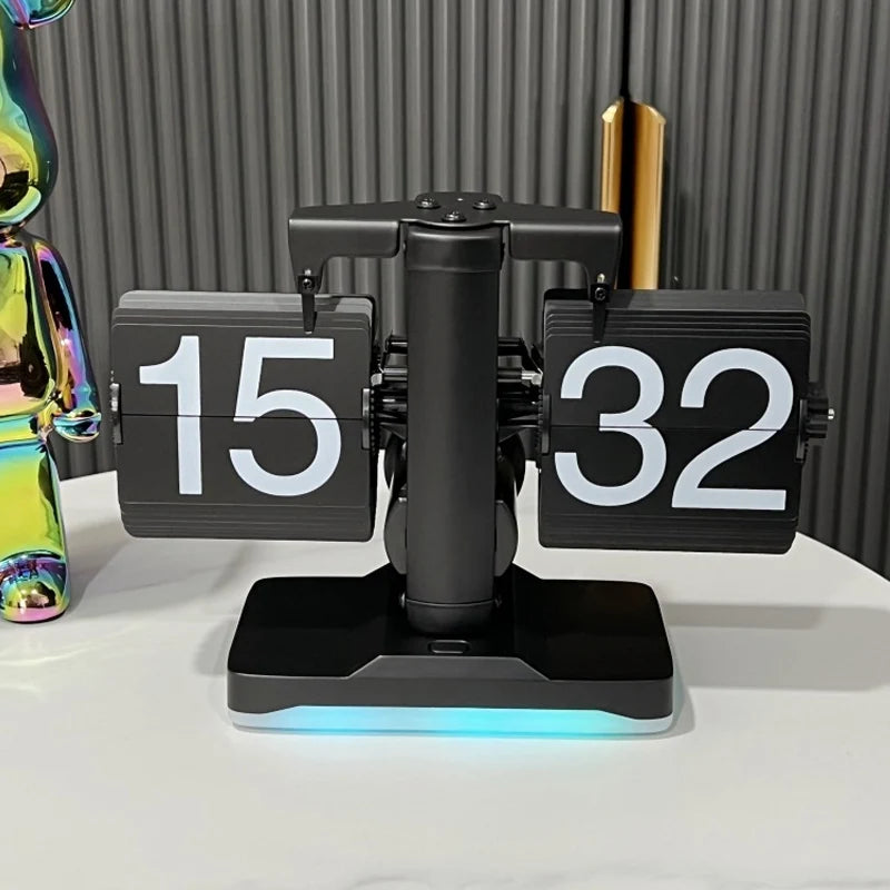 Relógio de Mesa Auto-flip Preto Europeu Base Com Led
